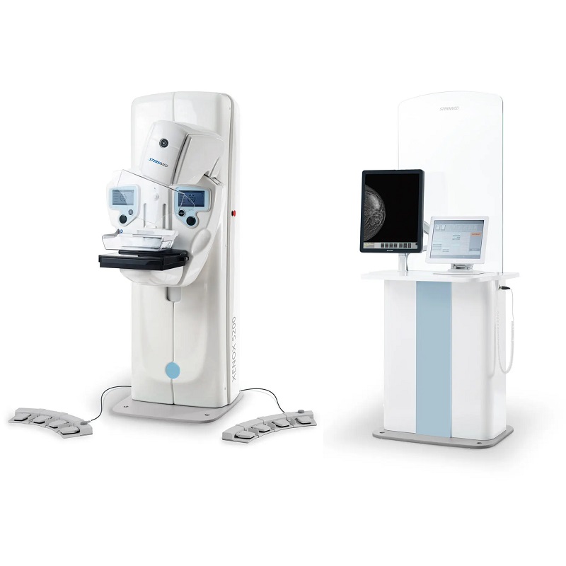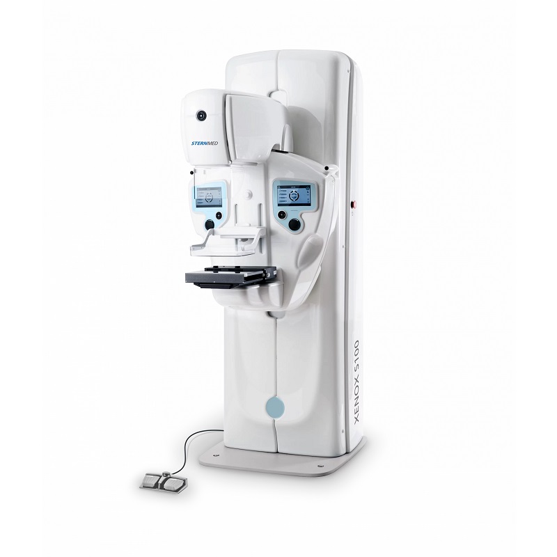 The Xenox S100 is a versatile analog mammography system with an iso-centric c-arm and superb image quality. It allows all breast projections without moving the patient and without adjusting the height of the C-Arm. It is upgradeable with a 3D stereotactic biopsy device. In this case, the C-Arm positioning for biopsy views (+/-15°) is motorized and selectable when the 3D device is inserted.